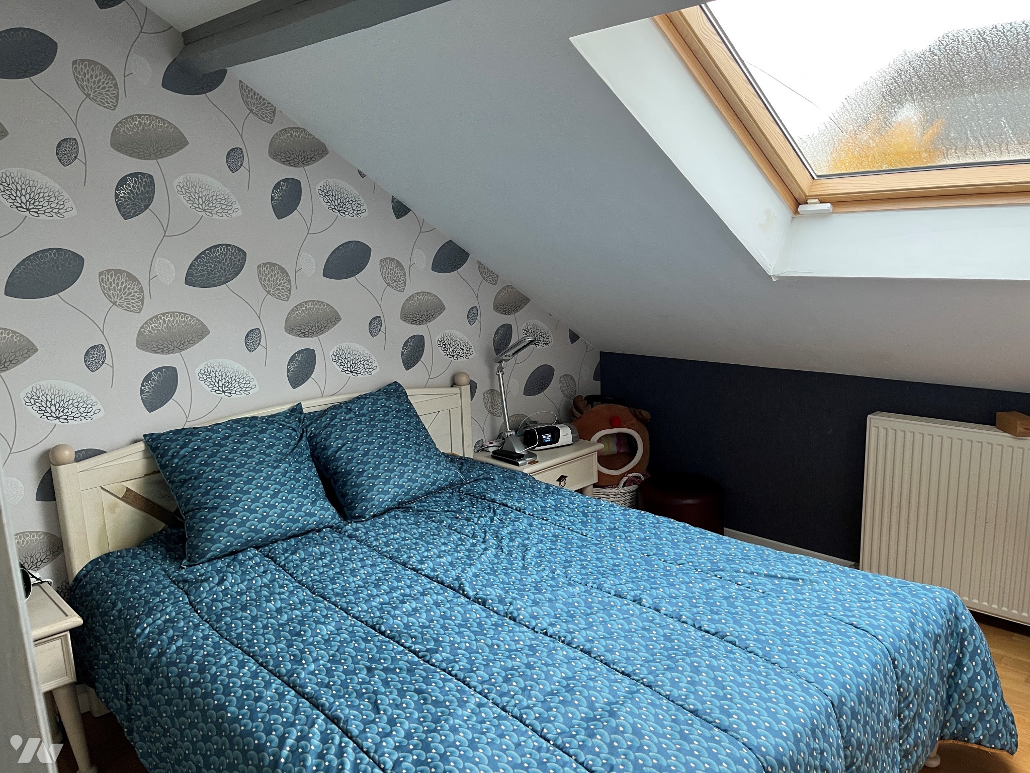 - Au rez-de-chaussée : entrée sur salon-séjour, cuisine, salle de bains et WC.